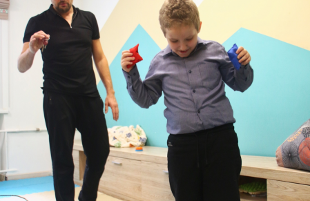 Мы знакомим детей с правилами поведения в студиях, вводим ритуалы приветствия и прощания, «даём пять» после выполненных заданий. Мир становится понятнее, когда в нем есть порядок. Эти знакомые модели поведения становятся островками комфорта и предсказуемости в новом для ребенка пространстве. Параллельно специалисты продолжают диагностику: выявляют актуальные трудности и определяют зону ближайшего развития.